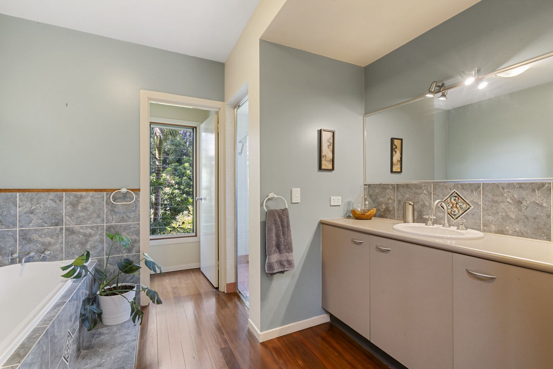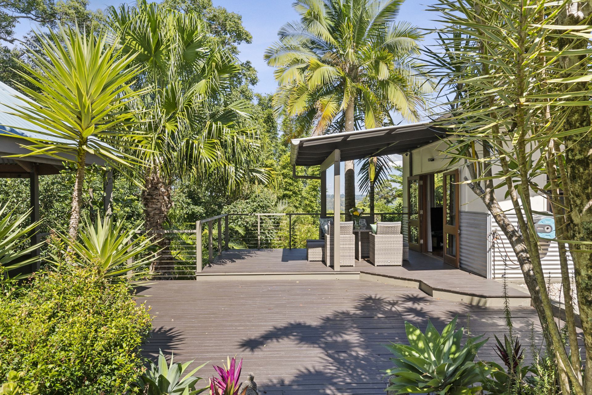- Expansive lawned backyard plus a pocket of your very own rainforest on one side of the home