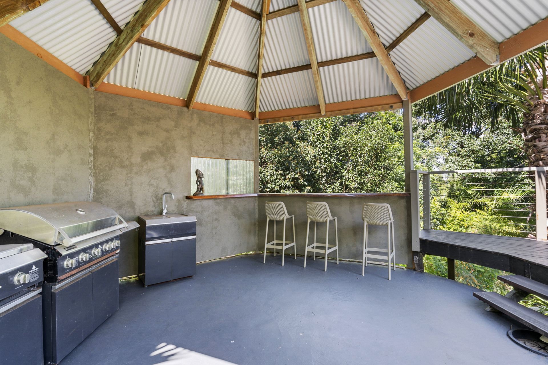 - Large capacity concrete inground water tank cleverly disguised and repurposed for the undercover BBQ area