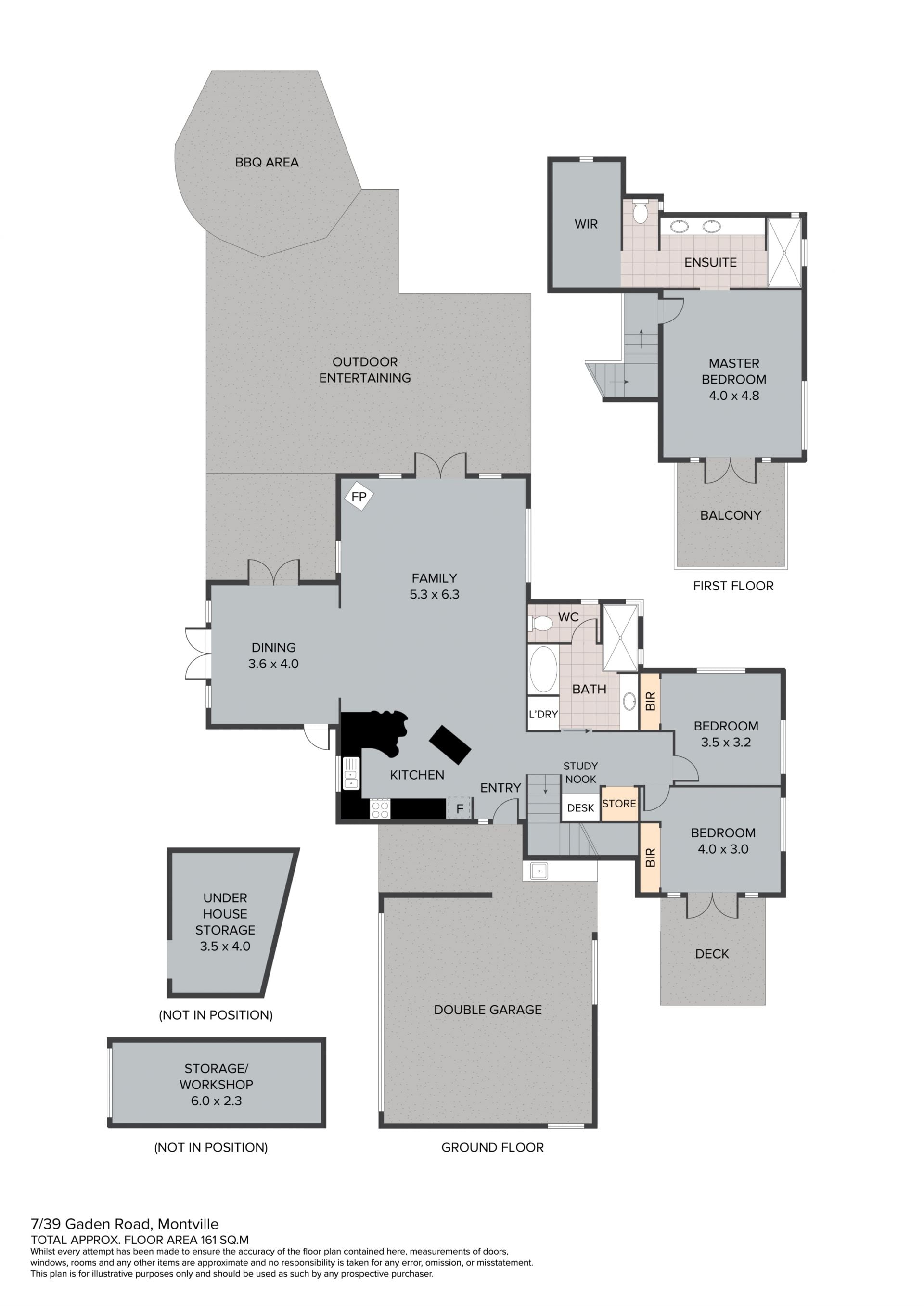 - Study nook and extra storage off the stairs to the master bedroom which feature unique timber railings, remote blinds and large pendant light